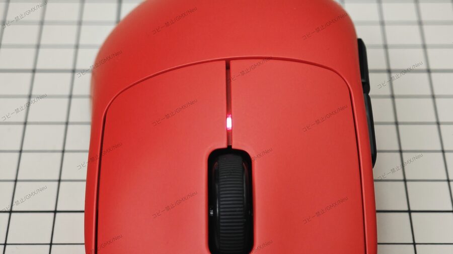 Zaopin Z2は上面のメインボタン付近にLEDインジケーターを搭載しています。このLEDは装飾的な要素だけでなく、DPI設定(マウスの感度)、バッテリー残量、充電状況といった重要な情報を色の変化で分かりやすく表示する機能的な設計となっています。
